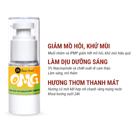 Serum nách ngăn mồ hôi, khử mùi và dưỡng sáng BareSoul OMG Underarm Serum 20g